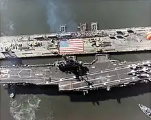 In the early 1990s, a group of businessmen from Japan wanted to buy Oriskany and display her in Tokyo Bay as part of a planned "City of America" exhibit.[10] Congressional legislation was initiated to transfer Oriskany, but the project failed due to lack of financing.