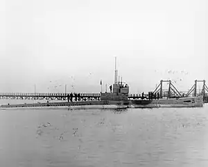 USS R-21 (SS-98) was an R-class coastal and harbor defense submarine of the United States Navy. Her keel was laid down on 19 April 1917 by the Lake Torpedo Boat Company in Bridgeport, Connecticut; the R-boats built by Lake Torpedo Boat (R-21 through R-27) are sometimes considered a separate class from those built by Fore River Shipbuilding (R-1 through R-14) and Union Iron Works (R-15 through R-20). She was launched on 10 July 1918 sponsored by Mrs. Dallas C. Laizure and commissioned on 17 June 1919.