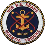 USS Richard E. Kraus (DD-849/AG-151) was a Gearing-class destroyer of the United States Navy, named for Marine Private First Class Richard E. Kraus (1925–1944), who was awarded the Medal of Honor posthumously for his "conspicuous gallantry" during the Battle of Peleliu.