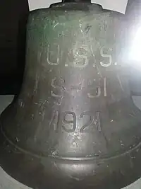 S-51 was raised on 5 July 1926 by a team led by then-Lieutenant Commander Edward Ellsberg with Lieutenant Henry Hartley assisting (both reached the rank of Rear Admiral). The entire salvage operation was commanded by Captain (later Fleet Admiral) Ernest J. King. She was struck from the Naval Vessel Register on 27 January 1930 and sold for scrap on 23 June to the Borough Metal Company of Brooklyn, New York.[3] S-51's bell was removed and taken to the Submarine Force Library & Museum at Groton, Connecticut.