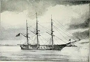 She served as flagship for the Pacific Squadron again from 1849–52. Repairs at Norfolk, Virginia took her into 1853, and on 9 August of that year, she sailed for a three-year cruise on the Brazil Station. In November 1856 she was inactivated, and in 1857, razeed, or reduced to a 24 gun sloop of war. She then served as flagship for the Home Squadron on the east coast of Mexico during 1859 and 1860.