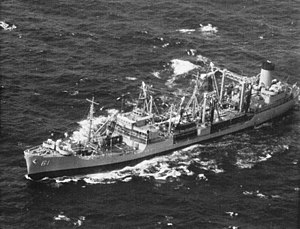 USS Severn (AO-61) was a Cimarron-class fleet oiler. She was constructed for the U.S. Navy during World War II and her assignment was to provide liquids, such as fuel or water, to ships in the forward battle areas. She survived this dangerous task and returned home post-war with two battle stars to her credit.