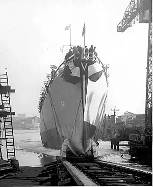 USS Sheehan is launched at Boston Navy Yard, Boston, Massachusetts, on 17 December 1943.
