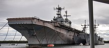 USS Tarawa (LHA-1), the lead ship of her class, is an amphibious assault ship that served in the United States Navy from 1976 to 2009. She is the second ship to be named for the Battle of Tarawa, fought during World War II. Tarawa was decommissioned on 31 March 2009, at San Diego Naval Base.[2]