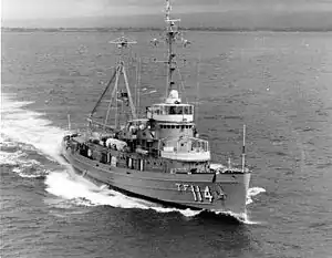 USS Tawakoni (ATF-114) was an Abnaki-class fleet ocean tug that served on active duty with the U.S. Navy from 1944 to 1978, seeing action in World War II, the Korean War and the Vietnam War. After thirty-four years of service, she was sold to the Republic of China Navy (Taiwan), where she served until November 2020.[2]