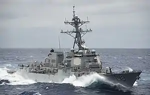USS Wayne E. Meyer (DDG-108) is an Arleigh Burke-class guided missile destroyer in the United States Navy. She is named after Rear Admiral Wayne E. Meyer, known as the "Father of Aegis". She carries the 100th AEGIS Weapon System to be delivered to the United States Navy.[2]