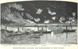 Between 14 April and 24 April 1862, she supported Porter's Mortar Flotilla during the bombardment of the two Confederate forts in preparation for Flag Officer David Farragut's run between them to New Orleans, Louisiana. That event occurred on 24 April 1862, but Westfield did not participate directly. Rather, she remained with the mortar boats and continued to support them and supply ammunition. Early in the summer of 1862, Westfield moved upriver with the Mortar Flotilla – to a point just below Vicksburg, Mississippi. There she resumed her duties in support of the mortars during the first campaign against the Confederate stronghold.