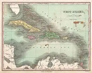 USS Wildcat was a two masted schooner of 48 tons[1] and was part of a U.S. naval fleet, and part of the West Indies Squadron, that sailed to the Caribbean to subdue the occurrence of pirate raids on merchant ships that had increased to almost 3,000 by the early 1820s. She was armed with three guns and had a crew of 31.[2] Wildcat was commanded by Lieutenant Legare' who sailed her to Washington with a dispatch regarding the disposition of the squadron and other matters concerning the war against piracy in the Caribbean.[3] On 28 October 1824 Wildcat was lost in a gale with all hands while sailing between Cuba and Thompson's Island, West Indies. Approximately 31 drowned.[4][5][6]