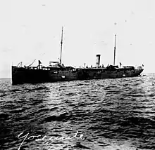 Soon after her arrival, Yosemite intercepted the Spanish steamer SS Antonio Lopez at 5:20 AM on 28 June when the latter tried to run into San Juan, beginning the Third Battle of San Juan. In spite of heavy covering fire from enemy shore batteries and gunboats Ponce de Leon, Isabella II, and Concha, Yosemite attacked the blockade runner and succeeded in pounding her almost to pieces.[3] She expended 251 5-inch (127-mm) shells in the encounter.[4] At the conclusion of that encounter, the auxiliary cruiser pulled back out of range of the gunboats and their protecting shore batteries to resume her blockade station. She concluded that assignment on 15 July and, after a three-day visit to St. Thomas in the Danish West Indies (Virgin Islands), headed back toward the Virginia Capes on the 18th.