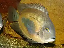 Uaru amphiacanthoides, the uaru or triangle cichlid, is a species of cichlid native to South America where it occurs in clear streams of the Amazon Basin. This species can reach a length of 25 centimetres (9.8 in) SL. It is also of importance as a food fish for native peoples and can be found in the aquarium trade.[1]