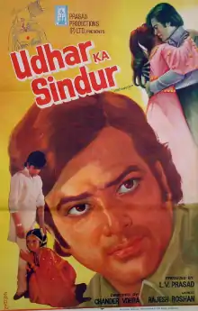 Udhar Ka Sindur (transl. Vermilion of Debt) is a 1976 Indian Hindi-language drama film, produced by L. V. Prasad under the Prasad Productions Pvt. Ltd. banner, directed by Chander Vohra. The film stars Jeetendra, Reena Roy and Asha Parekh, with music composed by Rajesh Roshan. It film is a remake of the Telugu film Manushullo Devudu (1974).[1] Parekh received a Filmfare nomination for Best Supporting Actress, the only nomination for the film.[2]