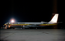 Uganda Airlines was founded as a subsidiary of the government-owned Uganda Development Corporation (UDC) in May 1976 as a replacement of the services previously operated by East African Airways.[4] It commenced operations in 1977, when Uganda Aviation Services (UAS), set up by British United Airways in 1965 but then a UDC subsidiary, was absorbed by Uganda Airlines, taking over the UAS route network.[4][5][6] Following delivery of the first Boeing 707-320C in the late 1970s, new routes to Brussels, London and Rome were inaugurated. A second Boeing 707-320C entered the fleet in 1981. That year, new routes to Cairo, Cologne and Dubai were launched, followed by Dar es Salaam, Kilimanjaro and Nairobi in subsequent years.[7]