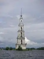 Plant construction began in 1935[3] and the first excavator arrived in January 1936. The plant's design was approved on May 23, 1938 by the Economic Council of the USSR Council of People's Commissars, modeled after the Rybinsk hydroelectric station.[1] Gulag prisoners were used in the construction.[3] Many villages and the old part of Kalyazin were flooded by the reservoir created by the dam.[3] Some of the oldest buildings in the region, including the 15th-century Intercession Monastery in Uglich and the 16th-century Trinity Monastery in Kalyazin, were covered by the reservoir.