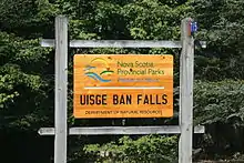 - ↑ "Uisge Bàn Falls Provincial Park". Government of Nova Scotia. Retrieved 23 June 2018.