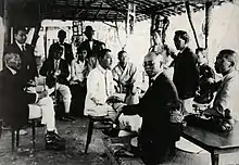 Hiro gave birth to their first child, Masao, in March 1906.[6] In June that year, Ujō traveled to Sakhalin on what became a failed business venture.[6][8] He had traveled to Ōdomari with a geisha, where she then ran off with most of his investment capital. He tried to make a profit by shipping a train-car load of apples to Tōkyō, but to his misfortune, the apples had rotted by the time they arrived.[5]
