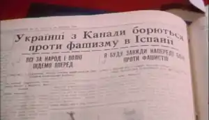 The article in a Canadian newspaper about the Ukrainians from Canada who fight against fascism in Spain.