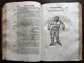 - ↑ Ruggieri, M. (2003). "From Aldrovandi's "Homuncio" (1592) to Buffon's girl (1749) and the "Wart Man" of Tilesius (1793): Antique illustrations of mosaicism in neurofibromatosis?". Journal of Medical Genetics. 40 (3): 227–232. doi:10.1136/jmg.40.3.227. PMC 1735405. PMID 12624146.