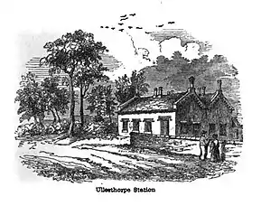 In 1857 the Midland completed a new main line south to Hitchin and the Leicester – Rugby section of the Midland Counties was relegated to a branch. British Railways closed the Leicester – Rugby line and its stations, including Ullesthorpe which closed on 1 January 1962.[1][2]