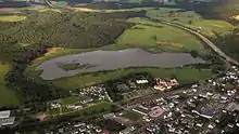 The Ulmener Maar is a maar in the Eifel mountains of Germany in the immediate vicinity of the town of Ulmen in the state of Rhineland-Palatinate. The lake is up to 37 metres deep and is surrounded by an embankment of tuff with an average height of 20 metres, which was formed from the erupted material of the former volcano. By the southern edge of the embankment are the ruins of a knight's castle, Ulmen Castle dating to the 11th century.