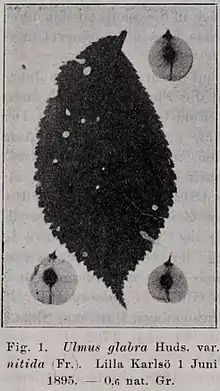 - 1 2 3 4 5 Johansson, K (1921). "Was ist unter dem Namen Ulmus montana With. var. nitida Fr. zu verstehen". Botaniska Notiser. 1: 71–75. Retrieved 12 February 2018.