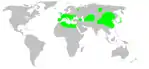 Globally they are found in Europe, Russia, Iraq, Iran, Central Asia, China, Korea, and Japan. The spider lives in warm, open terrain, like heathland, and weaves horizontal cribellate orb webs close to the ground. A stabilimentum is sometimes present, and the spider hangs beneath the hub.[4]