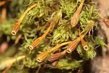 Like other bryophytes, show an alternation of generations.[17] The vegetative gametophyte generation is haploid, and is dominant for most of the life history.[18] Most plants are dioicous except for U. phyllantha, which is monoicous.[6] Asexual reproduction is uncommon, except in U. phyllantha, in which asexual propagules can commonly be found at the leaf apex.[19]