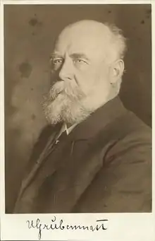 Grubenmann was born in Trogen, Switzerland to baker Johann Kaspar Grubenmann and Katharina Eugster. His ancestors included the bridge-builder Johann Ulrich Grubenmann (1709-1783) who constructed a famous wooden bridge at Schaffhausen. Growing in a family of limited means, Grubenmann was able to study with scholarships and help from friends and became a certified teacher of natural sciences in 1874. He received a PhD for studies on the basalts of Hegau in 1886 from the University of Zurich. He then taught at the Swiss Federal Institute of Technology and at the Canton School in Frauenfeld. He became Privatdozent in 1888 and replaced Gustav Adolph Kenngott in 1897 as professor of mineralogy and petrography.[1][2][3]