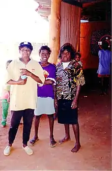 - ↑ Toyne, Phillip; Vachon, Daniel (1984). Growing Up the Country: the Pitjantjatjara Struggle for Their Land. Fitzroy, Victoria: McPhee Gribble. p. 137. ISBN 0-14-007641-7. OCLC 12611425.