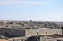 Umm el-Jimal (Arabic: ام الجمال, "Mother of Camels"), also known as Umm ej Jemāl, Umm al-Jimal or Umm idj-Djimal, is a village in Northern Jordan approximately 17 kilometers east of Mafraq. It is primarily notable for the substantial ruins of a Byzantine and early Islamic town which are clearly visible above the ground, as well as an older Roman village (locally referred to as al-Herri) located to the southwest of the Byzantine ruins.