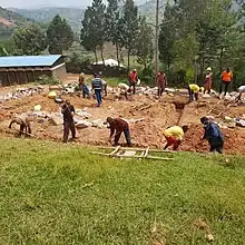 In the pre-colonial era, there were two forms of what is now known as Umuganda day: Ubudehe and Umuganda. Ubudehe was in preparation for agricultural season; however, it was not as inclusive as Umuganda since it only included people in the agricultural sector.[1] Umuganda was used as a way to work together as a community to stimulate the social and economic climate of Rwanda. Communities came together to help people who were unable to do physical work, like farming or stimulating infrastructure. This protected their state and human security as well as creating economic opportunities. It was a means of collective action and social obligation.[1] Also, umuganda allowed people connect and exchange goods, like oxen.[5]