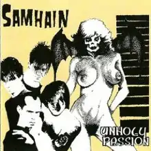 Unholy Passion is the first EP and second overall release by American deathrock band Samhain, Glenn Danzig's band after the disbanding of the Misfits. According to bassist Eerie Von in his photographic book Misery Obscura, the album was "a departure from our first release: more underground, more tribal. A step back further into the darkness".[1] The song "All Hell" is a re-recorded version of the Misfits' "All Hell Breaks Loose".