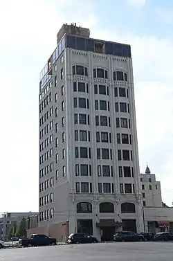 The Union Life Building is an eleven-story high-rise at 212 Center Street in downtown Little Rock, Arkansas. It was designed by Arkansas architect George R. Mann in the style of the Chicago school, and was built 1911–16. It is T-shaped in footprint, with brick curtain-wall construction on all sides except the main facade, which is faced in terra cotta tile and glass. The first two levels of the facade are crowned by an ornate cornice, its second-level segmented-arch windows echoed in windows and an arch design at the top of the building. It is Little Rock's only major example of Chicago style commercial architecture.[2]