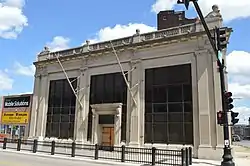 Built from 1922 to 1926, the building housed the Union Trust & Savings Bank, which was founded in 1901 by August Schlafly. Architect Thomas Imbs designed the Classical Revival building. The bank's opening followed a major race riot and a series of corruption scandals in East St. Louis, and its construction marked a turnaround in what had until then been a struggling city. The new building inspired confidence in the city's downtown, and several landmark buildings were built in downtown East St. Louis in the ensuing decade. The building was one of two Classical Revival banks built in East St. Louis and is the only one which is still standing.[2]