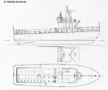 The navy built a number of these small, wooden torpedo retrievers as early as 1924.[17] They were driven by twin 150 horsepower Palmer Marine gasoline engines.[18] Many were declared surplus after World War II and sold to the public for prices as low as $250.[19]