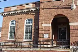 The Provincetown Post Office is located at 217 Commercial Street in Provincetown, Massachusetts. It is located in a 2+1⁄2-story brick building that was built in 1930. The main facade has a loggia-style arcade of three arches on the first level, leading to a recessed entrance. The second story has three large windows across, and the gable end has an oculus window and dentil moulding. The building is crowned by a cupola.[2]
