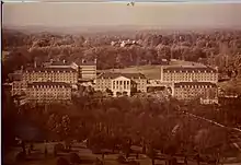 The mid-20th century was a time of expansion for both NIH and the PHS environmental health programs. In 1948, NIH's name was changed to the plural National Institutes of Health, and by the end of 1950 six new institutes had been created within it.[22] The environmental health programs expanded from water pollution into air, industrial, and chemical pollution and radiological health research during and after World War II,[26][29] and in 1954 they moved across town from the former Cincinnati Marine Hospital to the newly constructed Robert A. Taft Sanitary Engineering Center.[17][30]