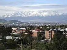 The 215/60 freeway's University Avenue underpass separates the city and the university. Painted on the support walls of the underpass is the Gluck Gateway Mural, a 190-foot (58 m) mural of Riverside and UCR history from the days before the Citrus Experiment Station through 2000, the year the mural was painted.[11]