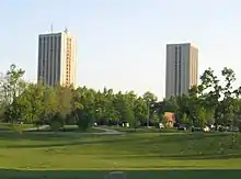 | Blanding I, II, III, IV, Tower | South Campus | This, along with the mirror-image Kirwan complex, was home to nearly 5,000 students, most of them freshmen. Blanding Tower was 23 stories tall. The tower was decommissioned as student housing after the 2015–16 school year, with the four low-rises decommissioned a year later; the entire complex was demolished in 2020. |