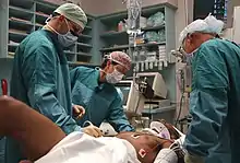 In partnership with the University of Miami medical school's trauma center at Jackson Memorial Hospital, U.S. Army surgeons operate on a wounded combatant during the Iraq War in March 2003