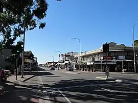 Unley Road is a road in the City of Unley, located south of the City of Adelaide, the capital of South Australia. It runs from South Terrace to Cross Road, where it becomes Belair Road.[3] The road was named after the family name of the wife of Thomas Whistler, owner of land in Unley which was laid out around 1857.[4]