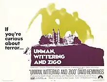 Unman, Wittering and Zigo is a 1971 British thriller film directed by John Mackenzie and starring David Hemmings, Douglas Wilmer and Carolyn Seymour.[1] It is adapted by Simon Raven from Giles Cooper's 1958 radio drama Unman, Wittering and Zigo.[2]