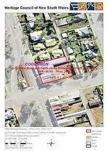 - 1 2 3 4 5 6 7 8 9 10 11 12 13 14 15 16 17 18 19 20 21 22 23 24 25 26 27 28 29 30 31 32 33 34 35 36 37 38 39 40 41 42 43 44 45 46 47 48 49 50 51 52 53 54 55 56 57 58 59 60 61 62 "Up-To-Date Store and Garth Jones Collection of farm machinery". New South Wales State Heritage Register. Department of Planning & Environment. H01761. Retrieved 2 June 2018.