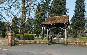 Hale grew rapidly after 1854 when the British Army became established in nearby Aldershot in Hampshire. At this time many people came to the area seeking employment in building Aldershot and the military barracks. As the cottages spread, those nearer to Aldershot formed a separate village, which became known as Heath End. As more homes were built and the local population expanded it soon became obvious that a new burial ground at Hale was needed as the churchyard at St John the Evangelist Church in Hale gradually began to fill. Locals could also be buried at the new cemetery at West Street Cemetery in town, also known as Farnham Cemetery, and at Badshot Lea Cemetery.[1] However, Farnham Burial Board advised St John the Evangelist church in Hale to apply for Common land from the War Office. Funds to purchase the land for a new cemetery and to build the two small chapels came from the Hale Poor rates and in 1872 the War Office provided 2 acres (0.81 ha) of land as a burial ground for the people of Upper Hale. The church of St Mark the Evangelist was built opposite the cemetery in 1883.[2]