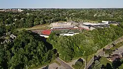 Upper St. Clair High School competes in the PIAA's District 7, commonly referred to as the WPIAL. Sports at St. Clair affiliated with WPIAL include baseball, basketball, cross country, field hockey, football, golf, lacrosse, rifle, soccer, softball, swimming, tennis, track, volleyball, and wrestling, as well as non-WPIAL cheerleading, crew, fencing, and ice hockey.[24] Club teams are usually called the Upper St. Clair Panthers, with the mascot being a black panther. These teams are supported on the campus of the high school Athletic facilities at consisting of two gyms, two indoor swimming pools, and a football stadium surrounding by a track.