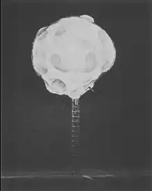 The device was designed by Ted Taylor at the Los Alamos National Laboratory of the United States of America, and is distinguished from all others because it was the most efficient pure fission design with a yield below 100 kt ever tested.[5] The design utilized a new hollow core concept.[7] The concept was termed as "radical implosion system" aiming towards reducing the amount of fissionable materials present in the weapon's core while generating moderately high yield.[8]: 201