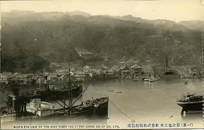 By 1919, Uraga Dock Company was considered one of the largest and best equipped private shipyards in the world.[1] Subsidiary companies were established in Yokkaichi, Mie and in Qingdao.