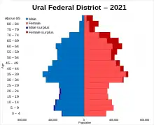 Ural Federal District (Russian: Ура́льский федера́льный о́круг, Uralsky federalny okrug) is one of the eight federal districts of Russia. Its population was 12,080,523 (79.9% urban) according to the 2010 Census.[2]
