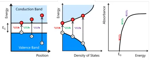Absorption in semiconductors is known to increase exponentially near the onset of absorption, spanning several orders of magnitude.[5][6] Absorption as a function of energy can be described by the following equation:[1][7]