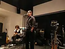 Rock band performing live in Cacilhas, O Culto bar in front of an audience