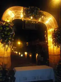 Moreover, every October during the Festival of their local patron saint, San Miguel Arcángel, Uriangatenses lay down homemade colorful religious carpets in their city's streets. They also construct large religious arches, decked with elaborate flower and lighting arrangements. These costly "arcos" fill Uriangato's narrow byways.